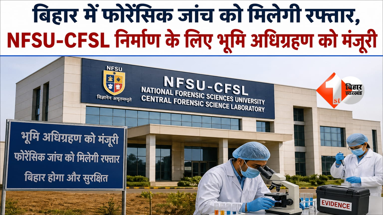 Bihar News: बिहार सरकार ने अपराध जांच को आधुनिक और तेज बनाने की दिशा में बड़ा कदम उठाते हुए पटना जिले के पुनपुन के डूमरी में राष्ट्रीय फोरेंसिक साइंसेज यूनिवर्सिटी (NFSU) के ऑफ-कैंपस और केंद्रीय फोरेंसिक साइंसेज लैबोरेटरी (CFSL) के निर्माण को मंजूरी दे दी है। इस परियोजना को प्राथमिकता देते हुए 50 एकड़ जमीन अधिग्रहण की स्वीकृति दी गई है, जिसके लिए 287.16 करोड़ रुपये जारी किए गए हैं।