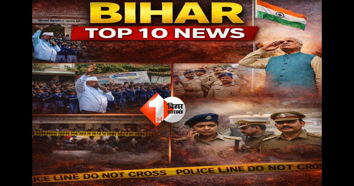 PATNA: (Bihar Top News) पूरा देश आज गणतंत्र दिवस समारोह मना रहा है. लेकिन बिहार के एक सरकारी स्कूल में हुए वाकये से लोग हतप्रभ हैं. स्कूल के मास्टर ने जिन्ना जिंदाबाद के नारे लगाये. दूसरी ओर पटना के गांधी मैदान में आयोजित गणतंत्र दिवस समारोह में राज्यपाल आरिफ मोहम्मद खान ने झंडोत्तोलन किया. वहीं, जहानाबाद की NEET छात्रा कांड में पुलिस की जांच अब नये सिरे से शुरू हुई है. लेकिन पीड़ित परिवार ने पुलिसिया जांच पर गंभीर सवाल खड़े किये हैं. पढ़िये आज की टॉप 10 खबरें