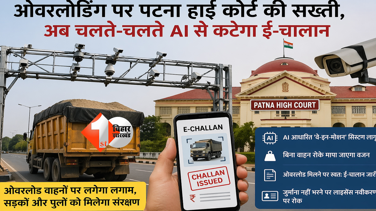 PATNA:बिहार में ओवरलोड वाहनों से सड़कों और पुलों को हो रहे नुकसान को लेकर पटना हाई कोर्ट ने सख्त रुख अपनाया है। अब इस समस्या पर नियंत्रण के लिए अत्याधुनिक AI आधारित ‘वे-इन-मोशन’ तकनीक के जरिए बिना वाहन रोके ही वजन मापा जाएगा और नियम उल्लंघन करने पर स्वतः ई-चालान भी जारी किया जाएगा।