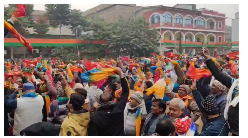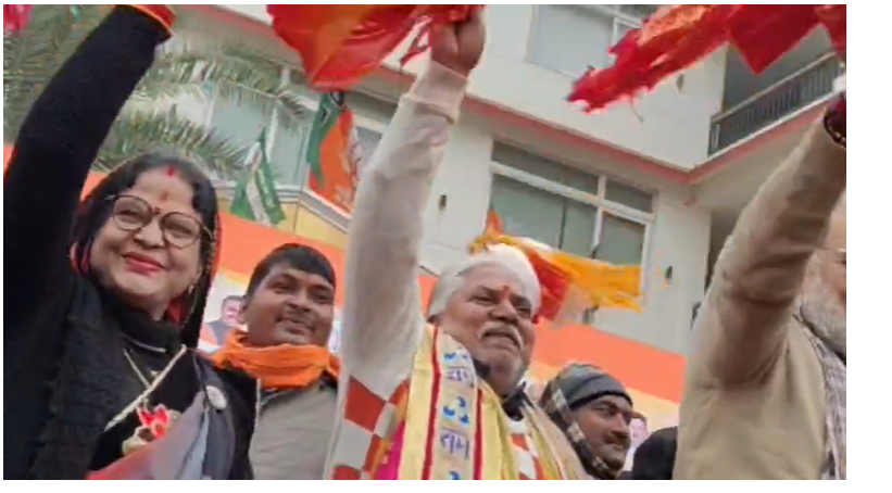 BEGUSARAI: 2025 में हुए बिहार विधानसभा चुनाव के नतीजे एक महीने पहले ही जारी कर दिया गया है लेकिन इसका जश्न एक महीने बाद भी मनाया जा रहा है। इस बार बिहार के बेगूसराय जिले में अपार जीत के इस जश्न को मनाया गया। इस मौके पर बीजेपी के वरिष्ठ नेताओं ने जोड़ी मोदी नीतीश के हिट हो गईल गाने पर हाथ में गमछा लहराया और अपनी खुशी का इजहार किया। इस मौके पर केन्द्रीय मंत्री गिरिराज सिंह, बिहार विधानसभा अध्यक्ष डॉ. प्रेम कुमार ने हाथ में गमछा लहराया और जीत का जश्न मनाया।