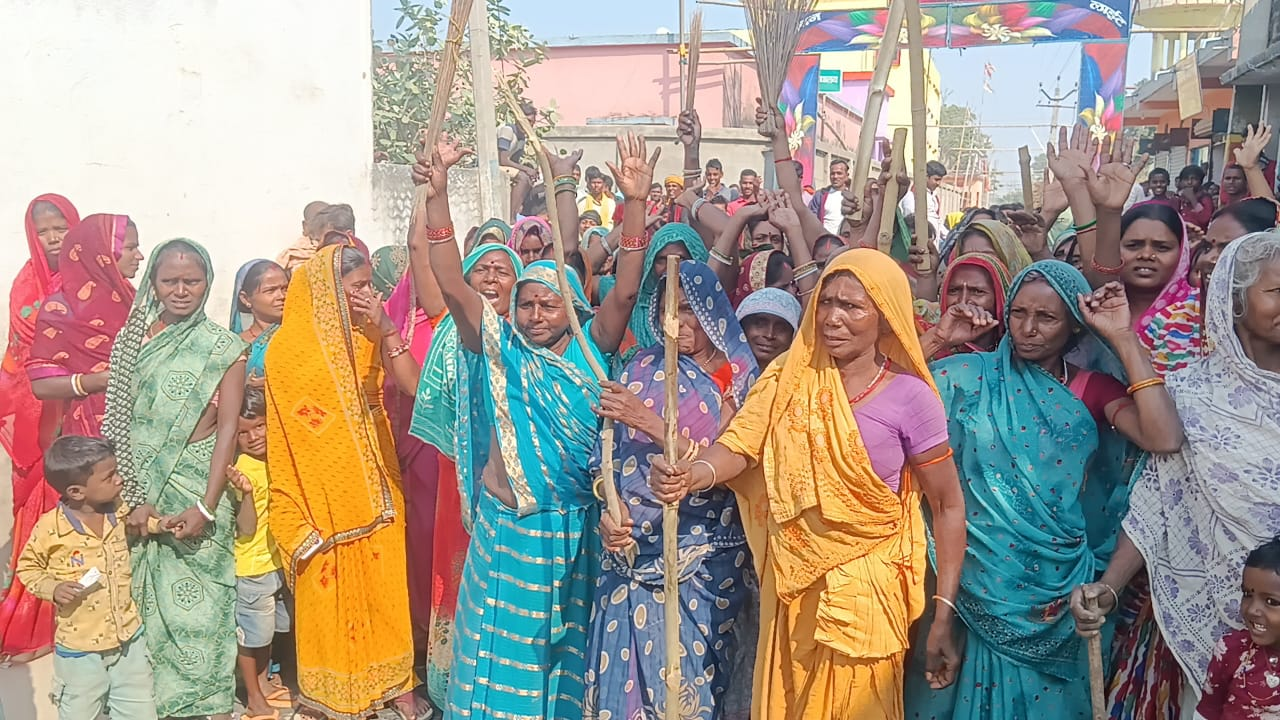 हाथ में झाड़ू लेकर महिलाओं ने किया प्रदर्शन - फ़ोटो REPORTER