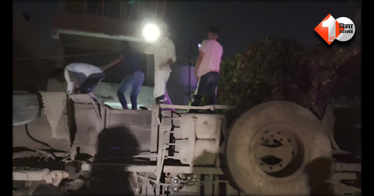 Bihar News: बिहार के गया के कटारी हिल रोड पर गुरुवार देर रात एक भीषण सड़क हादसा हो गया है। यहां सीमेंट से भरा एक हाईवा अनियंत्रित होकर पाम गार्डन के पास पलट गया, जिसकी चपेट में एक बाइक और ऑटो आ गए। इस हादसे में एक युवक की मौत हो गई है, जबकि दो अन्य लोग गंभीर रूप से घायल बताए जा रहे।