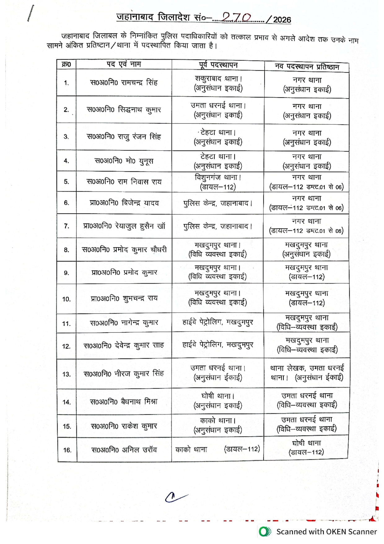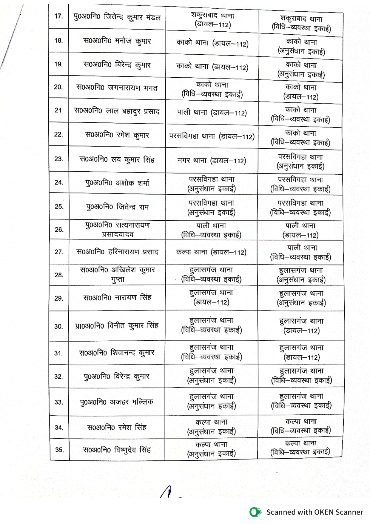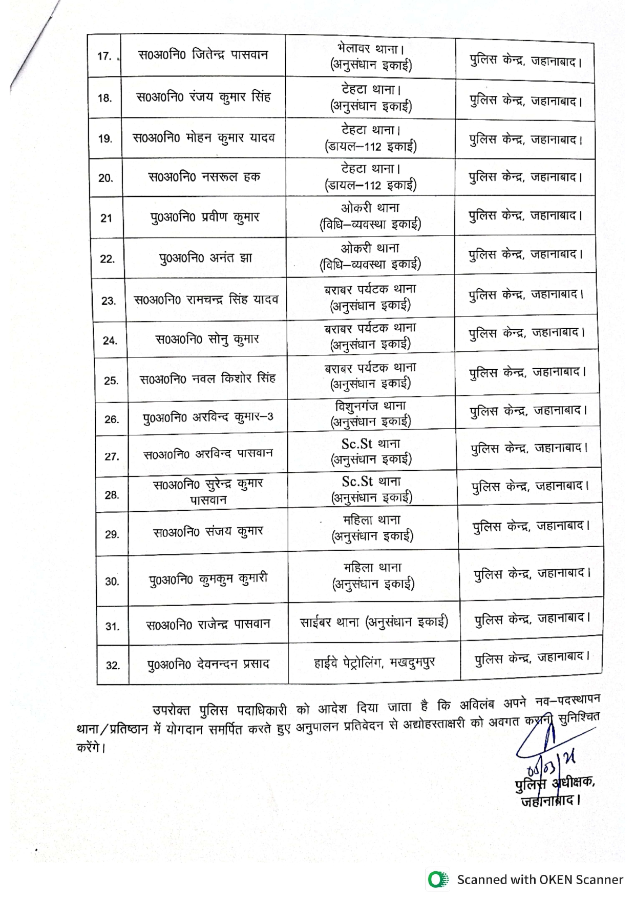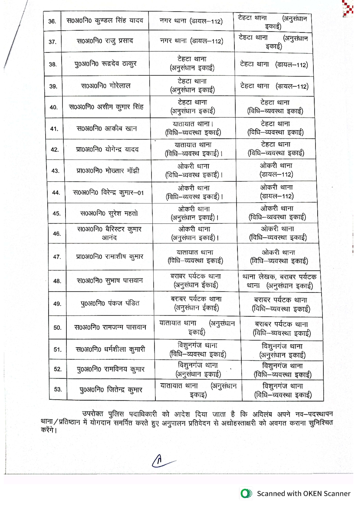 वही पंकज कुमार को टेहटा थाना अध्यक्ष से हटाते हुए उन्हें साइबर थाना में पोस्टिंग की गई, तो घोसी थाना में पदस्थापित अपर थाना अध्यक्ष चंदा देवी को सिकरिया थाना अध्यक्ष का कमान सौपा गया है। सिकरिया के थाना अध्यक्ष सुमन कुमार का तबादला ओकरी थाना अध्यक्ष के रूप में किया गया है। इन थाना अध्यक्षों के अलावा 50 दरोगा एवं जामदार पुलिस पदाधिकारियों का भी एसपी अपराजित लोहान ने तबादला किया है। नीचे देखिये पूरी लिस्ट...