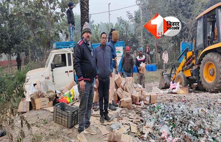Bihar news: बिहार में पूर्ण शराबबंदी है, लेकिन यह लगातार अवैध शराब के मामले सामने आ रहे है। ताजा मामला जमुई जिले से है, जहां प्रशासन ने बड़ी कार्रवाई करते हुए करीब 1 करोड़ 40 लाख रुपये मूल्य की अवैध शराब को नष्ट किया। यह कार्रवाई मलयपुर स्थित पुलिस लाइन परिसर में की गई, जहां विभिन्न थाना क्षेत्रों से जब्त की गई शराब को बुलडोजर (JCB) की मदद से विधिसम्मत तरीके से विनष्ट किया गया।