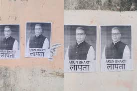 JAMUI: केंद्रीय मंत्री चिराग पासवान के जीजा और जमुई के सांसद अरुण भारती को लेकर जिले में राजनीतिक हलचल तेज हो गई है। जमुई की जनता अब अपने सांसद की तलाश कर रही है। जिले के कई इलाकों में अरुण भारती को “लापता” बताते हुए पोस्टर लगाए गए हैं, जिसने स्थानीय राजनीति को गरमा दिया है।