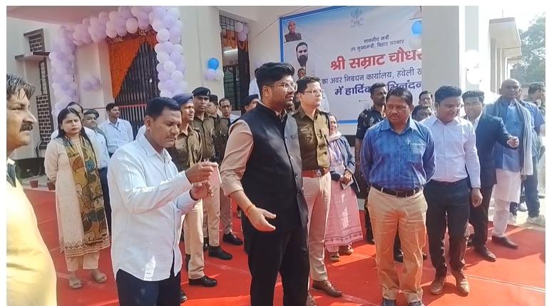 अपने दो दिवसीय मुंगेर दौरे के दौरान बिहार के उपमुख्यमंत्री सम्राट चौधरी अपने गृह विधानसभा क्षेत्र तारापुर के हवेली खड़गपुर प्रखंड पहुंचे थे। जहां पर उन्होंने अन्य नेताओं और अधिकारियों की मौजूदगी में फीटा काटकर एक करोड़ 60 लाख रुपए की लागत से बने नवनिर्मित निबंधन कार्यालय का उद्घाटन कर मुंगेर की जनता को इसे समर्पित किया।