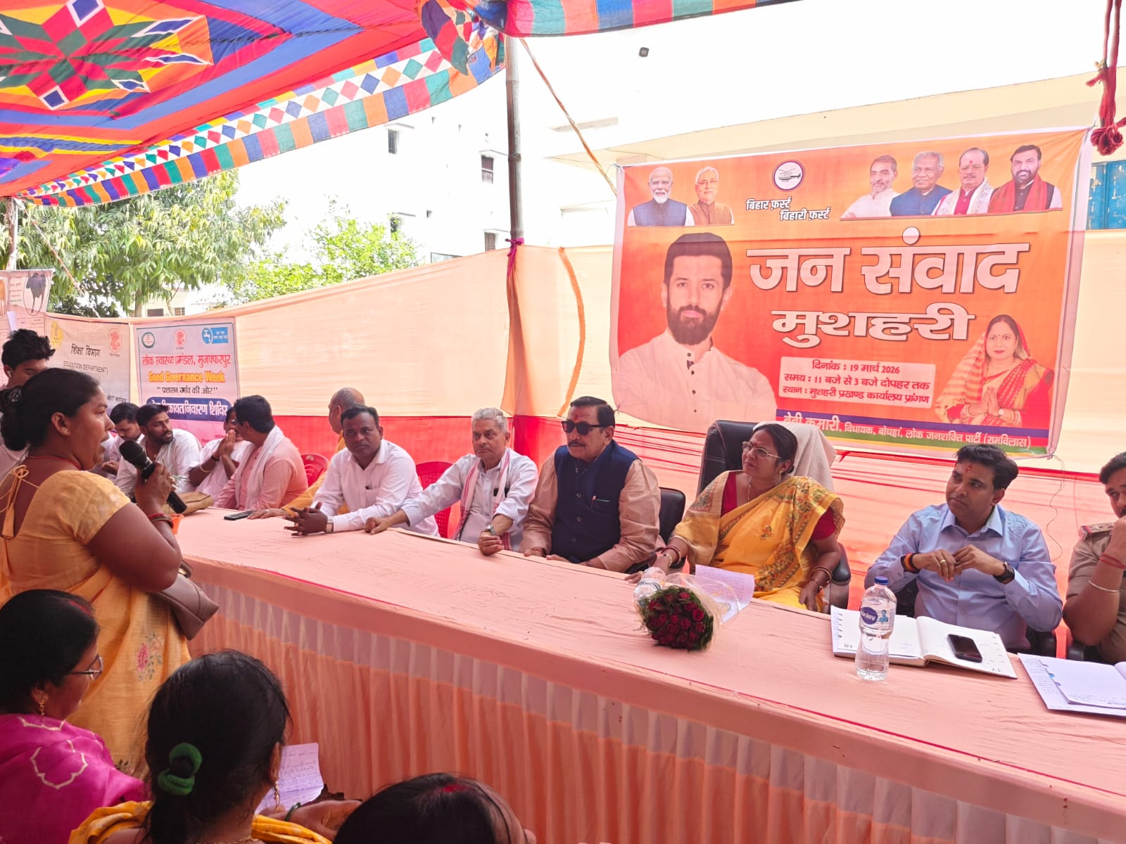 MUZAFFARPUR: मुशहरी (बोचहा विधानसभा क्षेत्र) में आयोजित “जन संवाद ” कार्यक्रम में हजारों लोग शामिल हुए। जनता ने प्रशासनिक लापरवाही और भ्रष्टाचार के खिलाफ अपनी समस्याएं खुलकर रखीं। कार्यक्रम के दौरान विधायक श्रीमती बेबी कुमारी ने चेतावनी दी कि अब कोई भी सरकारी अधिकारी या कर्मचारी जनता के साथ मनमानी या भ्रष्टाचार बर्दाश्त नहीं करेगा।