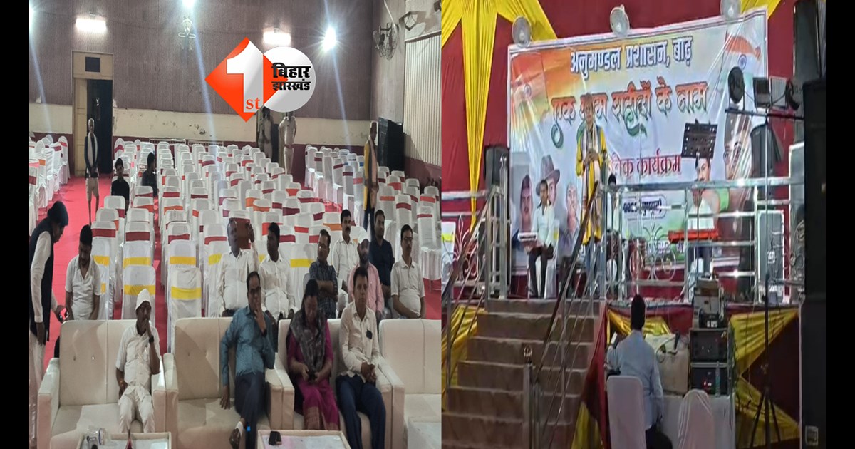 PATNA: बाढ़ अनुमंडल के सबेरा सिनेमा हॉल में अनुमंडल प्रशासन द्वारा आयोजित “एक शाम शहीदों के नाम” कार्यक्रम में लोगों की भारी कमी देखने को मिली। कार्यक्रम के दौरान अधिकांश कुर्सियां खाली रहीं, जिससे आयोजन की तैयारियों और प्रचार-प्रसार पर सवाल उठने लगे हैं।