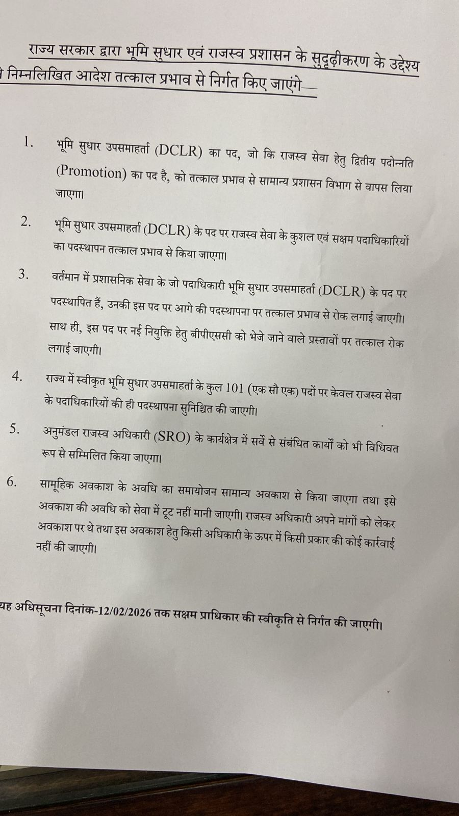 बता दें कि बिहार राजस्व सेवा के पदाधिकारियों को बिहार राजस्व द्वितीय प्रोन्नति के पद भूमि सुधार उप समहर्ता पदस्थािपत करने के लिए यह हड़ताल की गई थी। भूमि सुधार उप समहर्ता का पद सामान्य प्रशासन विभाग को आवंटित कर दिया गया था। भूमि सुधार उप समहर्ता का पद बिहार राजस्व राजस्व सेवा अधिकारी को आवंटन के आश्वासन मिलने पर हड़ताल खत्म हुआ। 02/02/26 से बिहार राजस्व सेवा के सभी पदाधिकारी अनिश्चतकालीन हड़ताल पर चले गए थे। हड़ताल खत्म होने के बाद विजय सिन्हा ने मीडिया से बातचीत की।