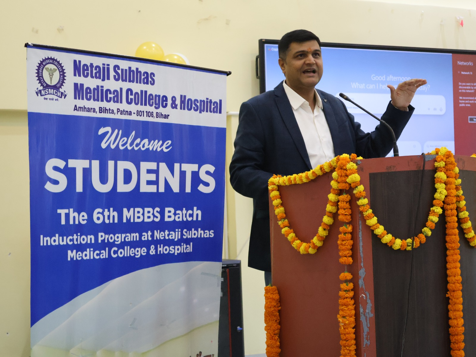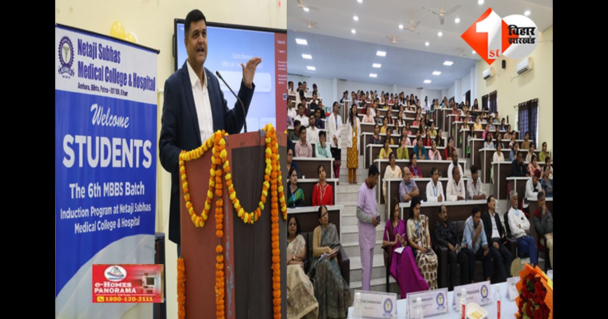 PATNA: पटना के बिहटा स्थित नेताजी सुभाष मेडिकल कॉलेज एंड हॉस्पिटल (NSMCH) में सोमवार को छठे MBBS बैच (सत्र 2025–30) के छात्रों के लिए भव्य इंडक्शन प्रोग्राम और व्हाइट कोट वितरण समारोह का आयोजन किया गया। संस्थान को इस साल मेडिकल काउंसिल ने MBBS के 150 सीटों पर एडमिशन लेने की इजाजत दी है, जिससे संस्थान में उत्साह का माहौल है।