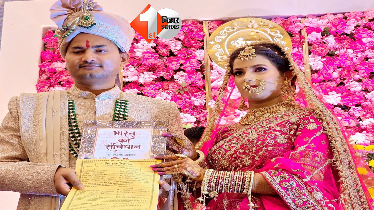 पटना में इनकी शादी संविधान की शपथ लेकर हुई, इनकी शादी पाखंड मुक्त तरीके से! हुई। ना कोई पंडित, ना मंत्रोच्चार, ना दहेज और ना फिजूलखर्ची... बस संविधान की शपथ और बराबरी का संदेश। इन दोनों का यह कदम किसी क्रांति से कम नहीं है। पटना में हुई अनोखी शादी में ना फेरे हुए ना पंडित की जरूर पड़ी। ना ही वर-वधू ने 7 वचन लिये। संविधान को साक्षी मानकर दोनों ने विवाह किया। इस शादी की चर्चा सोशल मीडिया पर खूब हो रही है।