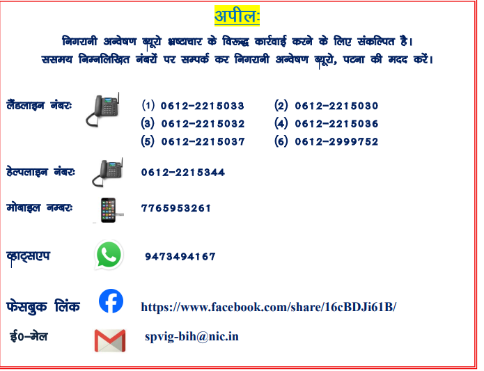 विजिलेंस की टीम ने दुल्हिन बाजार प्रखंड के प्रखंड आपूर्ति पदाधिकारी अभिषेक अकेला को दस हजार रूपये घूस लेते गिरफ्तार किया है। निगरानी अन्वेषण ब्यूरो की मुख्यालय टीम के द्वारा आज दिनांक 17.12.2025 को निगरानी थाना कांड सं0-110/25, दिनांक 13.12.2025 में प्राथमिकी अभियुक्त- श्री अभिषेक अकेला, प्रखण्ड आपूर्ति पदाधिका, प्रखण्ड- दुल्हिन बाजार, जिला- पटना को 10,000/- (दस हजार) रूपये रिश्वत लेते हुए अनुमण्डल कार्यालय परिसर पालीगंज, पटना से गिरफ्तार किया गया है।