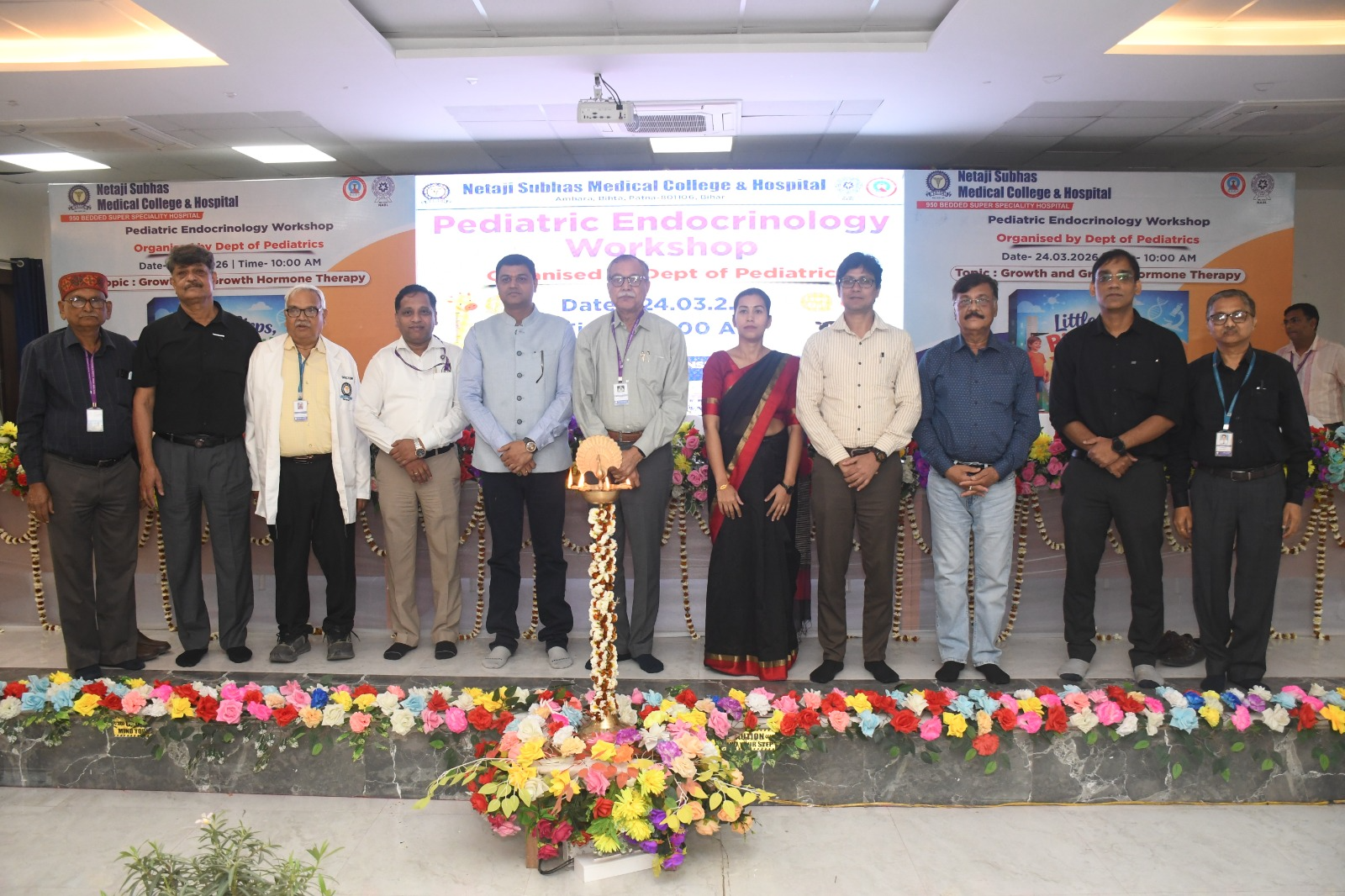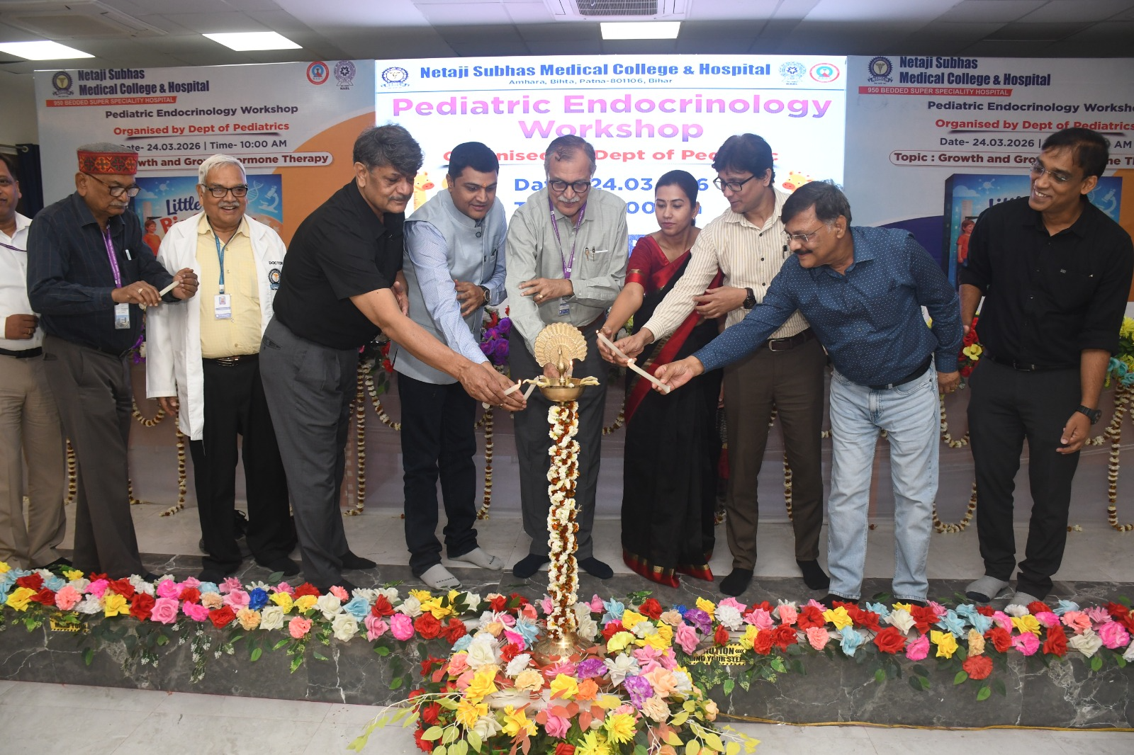 PATNA:पटना के बिहटा स्थित नेताजी सुभाष मेडिकल कॉलेज एवं अस्पताल में मंगलवार 24 मार्च को एक दिवसीय कार्यशाला का आयोजन हुआ। शिशु रोग विभाग द्वारा “ग्रोथ एंड ग्रोथ हार्मोन थेरेपी”विषय पर एक दिवसीय पीडियाट्रिक एंडोक्राइनोलॉजी कार्यशाला का सफल आयोजन किया गया।