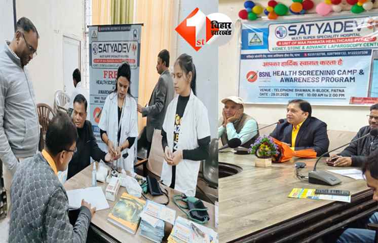 Patna: सत्यदेव मल्टी सुपर स्पेशियलिटी हॉस्पिटल की ओर से बीएसएनएल कर्मचारियों के लिए गुरुवार को एक निःशुल्क स्वास्थ्य जांच एवं जागरूकता शिविर का आयोजन किया गया। सुबह से ही कर्मियों की लंबी कतार लग गई।