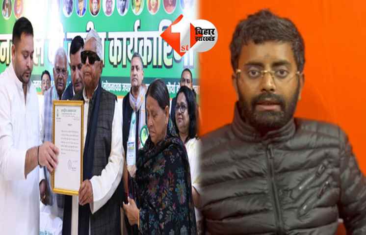 PATNA: बिहार विधानसभा के नेता प्रतिपक्ष तेजस्वी यादव को राष्ट्रीय जनता दल ने कार्यकारी अध्यक्ष नियुक्त किया है। राजद सुप्रीमो लालू प्रसाद यादव ने अपने हाथों तेजस्वी यादव को नियुक्ति पत्र सौंपा। तेजस्वी यादव के पार्टी के राष्ट्रीय कार्यकारी अध्यक्ष नियुक्त किये जाने के बाद नेताओं की प्रतिक्रियाएं आने शुरू हो गयी है।