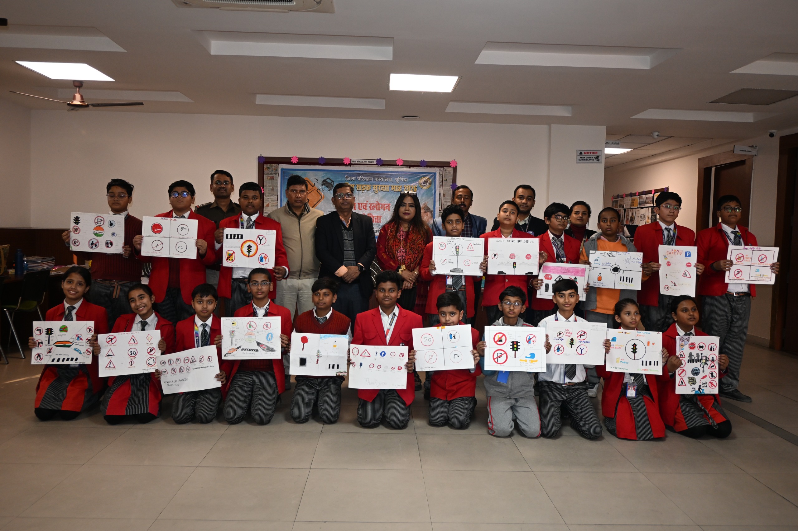 वहीं कक्षा 6 से 8 के विद्यार्थियों के लिए लिखित प्रश्नोत्तरी प्रतियोगिता का आयोजन किया गया, जिसमें विद्यार्थियों ने यातायात संकेतों, नियमों, सड़क पर सुरक्षित व्यवहार तथा दुर्घटना-निवारण से संबंधित प्रश्नों का उत्कृष्ट उत्तर देकर अपनी बौद्धिक क्षमता एवं ज्ञान का परिचय दिया। इस प्रतियोगिता के माध्यम से विद्यार्थियों को यह महत्वपूर्ण सीख प्राप्त हुई कि अनुशासन, सतर्कता और जागरूकता ही जीवन-सुरक्षा की सबसे मजबूत आधारशिला है।