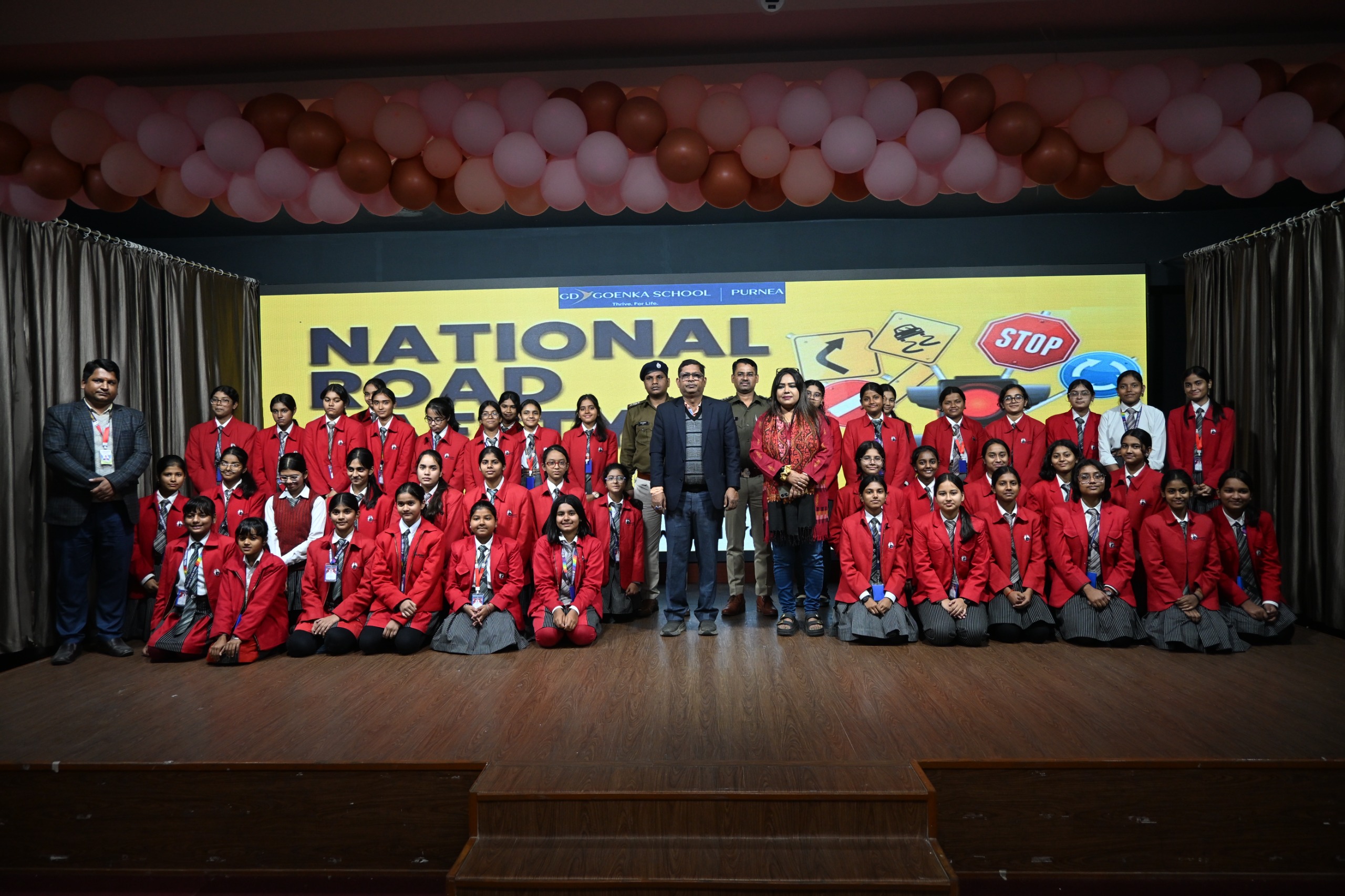 Purnea News: जी. डी. गोयनका पब्लिक स्कूल, पूर्णिया में “सड़क सुरक्षा सप्ताह” का आयोजन जिला यातायात कार्यालय द्वारा जारी दिशा-निर्देशों के आलोक में अत्यंत गरिमामय, सुव्यवस्थित एवं प्रभावशाली ढंग से संपन्न कराया गया। यह आयोजन विद्यालय की दूरदर्शी सोच, अनुशासनप्रिय वातावरण तथा विद्यार्थियों के सर्वांगीण विकास के प्रति उसकी अटूट प्रतिबद्धता का उत्कृष्ट उदाहरण रहा। कार्यक्रम का मुख्य उद्देश्य विद्यार्थियों में यातायात नियमों का पालन, सड़क पर सतर्कता, सुरक्षित व्यवहार तथा जिम्मेदार नागरिकता की भावना को विकसित करना रहा, जिससे बच्चे केवल पुस्तकीय ज्ञान तक सीमित न रहें, बल्कि वास्तविक जीवन में भी सुरक्षा के प्रति सजग एवं संवेदनशील बनें।