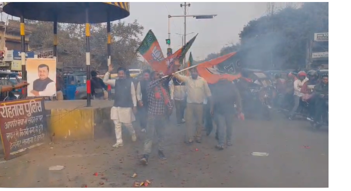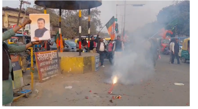 जश्न के दौरान कार्यकर्ताओं ने मिठाइयां बांटी और आतिशबाजी के बाद एक-दूसरे को गुलाल लगाकर अपनी खुशी साझा की। पूरे इलाके में उत्साह और उत्सव का माहौल देखने को मिला।