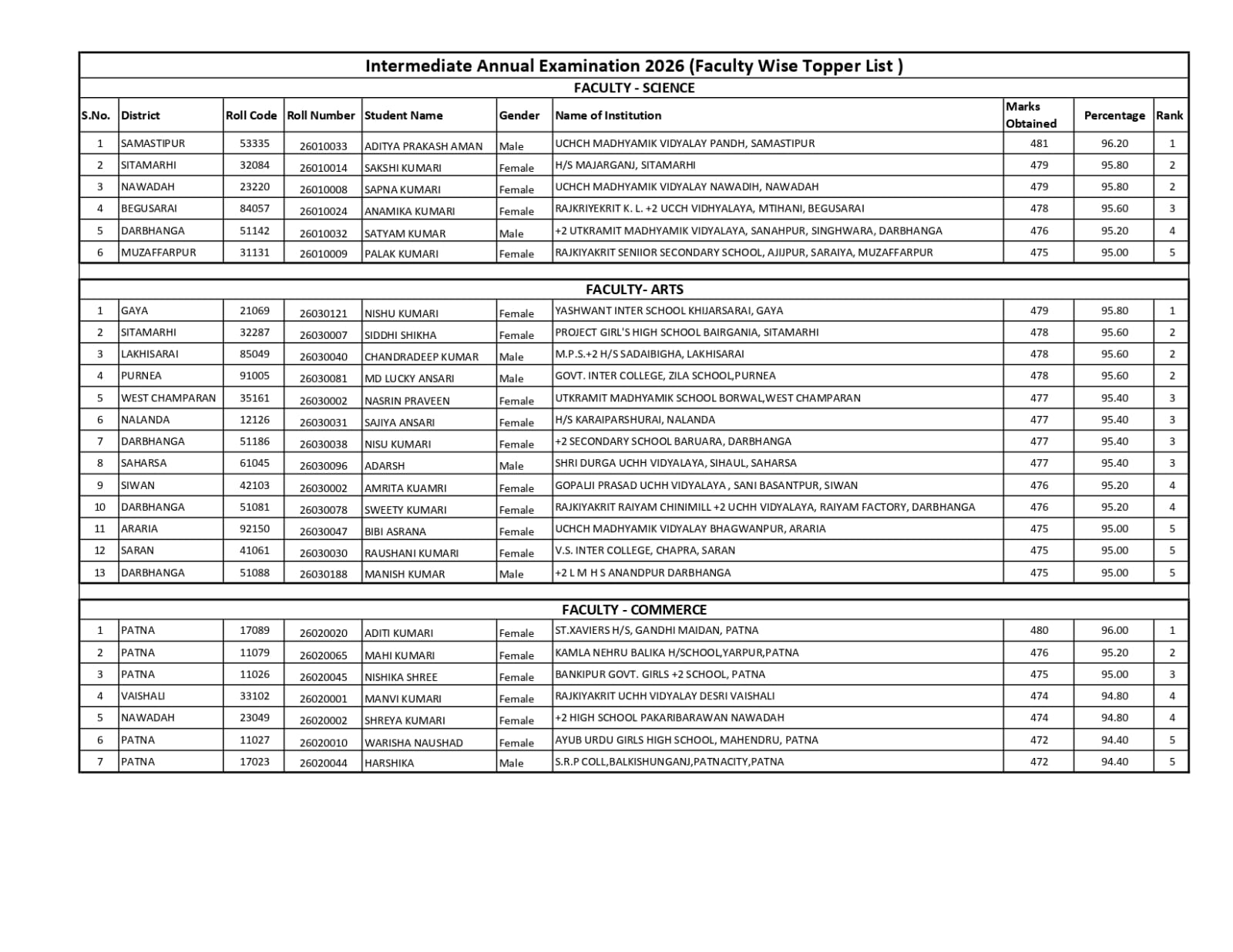 SITAMARHI: सीतामढ़ी की दो बेटियों ने जिले का नाम रोशन करने का काम किया है। सीतामढ़ी की होनहार छात्रा सिद्धि सिखा ने इंटरमीडिएट परीक्षा में शानदार प्रदर्शन करते हुए पूरे बिहार में आर्ट्स संकाय में सेकंड स्टेट टॉपर बनकर जिले का नाम रोशन किया है। वही साक्षी साइंस में सेकंड टॉपर बनकर जिले का सम्मान बढ़ाया है। दोनों के घर में खुशी का माहौल देखने को मिल रहा है। इन बेटियों पर परिवार गर्व महसूस कर रहा है।