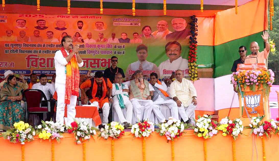SIWAN: रघुनाथपुर से जनता दल यूनाइटेड (जेडीयू) के कैंडिंडेट विकास कुमार सिंह, दरौली से विष्णुदेव पासवान के लिए चुनाव प्रचार करने आए उत्तर प्रदेश के मुख्यमंत्री योगी आदित्यनाथ ने मतदाताओं को एनडीए प्रत्याशी के पक्ष में वोट देने की अपील की और बिहार को विकास के पटरी पर आगे बढ़ाने की बात कही। इस दौरान महागठबंधन से आरजेडी के उम्मीदवार पूर्व सांसद मोहम्मद शहाबुद्दीन के बेटे ओसामा साहेब पर योगी आदित्यनाथ ने जमकर हमला बोला। उन्होंने जंगलराज की याद ताजा करवा दी। कहा कि एनडीए के जितने भी सहयोगी दल हैं, इन सभी ने मिलकर तय किया है कि बिहार को अब जंगलराज की ओर नहीं जाने देना है। योगी आदित्यनाथ ने ओसामा का नाम लिए बिना कहा कि जैसा नाम वैसा काम।