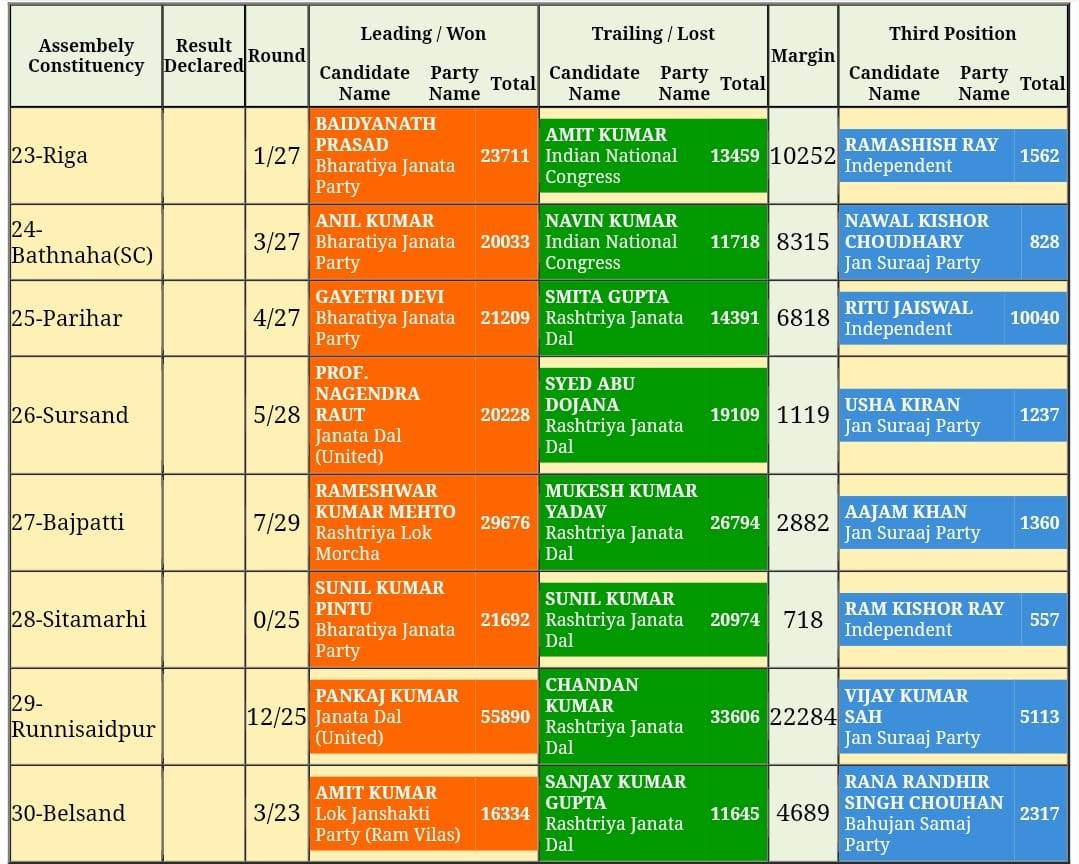 राजनगर से बीजेपी के सुजीत पासवान 13 वां 23156 वोट से आगे,
