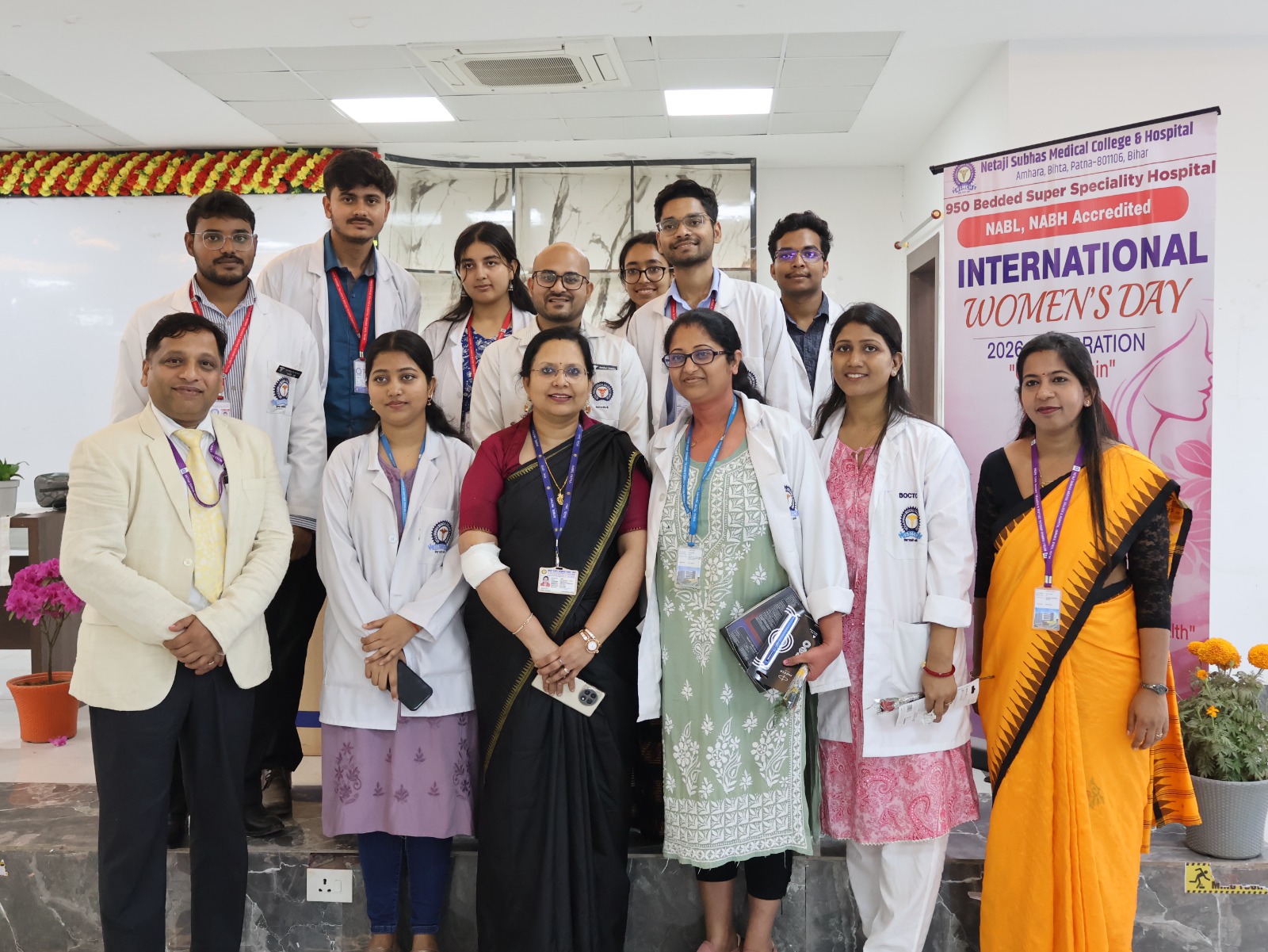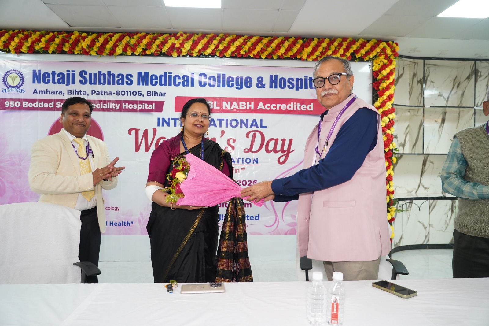 Patna News: नेताजी सुभाष मेडिकल कॉलेज एवं अस्पताल (NSMCH), बिहटा में 07 मार्च 2026 को अंतरराष्ट्रीय महिला दिवस के अवसर पर एक विशेष कार्यक्रम का आयोजन किया गया। इस कार्यक्रम की मुख्य अतिथि डॉ. मोनिका अनंत, प्रोफेसर एवं यूनिट हेड, प्रसूति एवं स्त्री रोग विभाग, एम्स पटना थीं। उन्होंने अपने व्याख्यान में महिलाओं की सुरक्षा एवं स्वास्थ्य के महत्व पर विस्तार से प्रकाश डाला तथा समाज में महिलाओं के सशक्तिकरण की आवश्यकता पर जोर दिया।