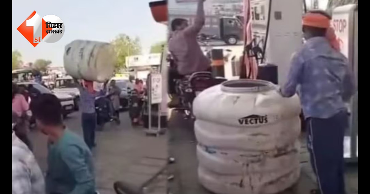 इसी बीच एक हैरान करने वाला मामला सामने आया जब एक युवक पेट्रोल भरवाने के लिए घर से पानी का बड़ा टंकी उठाकर पेट्रोल पंप पर पहुंच गया। पानी की टंकी माथे पर लिये युवक को देखकर हर कोई हैरान रह गये। इस अजीबोगरीब मामले को देख किसी ने युवक का वीडियो मोबाइल से बना लिया और उसे सोशल मीडिया पर अपलोड कर दिया। देखते ही देखते यह वीडियो सोशल मीडिया पर तेजी से वायरल हो गया।