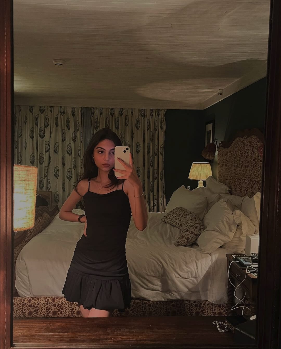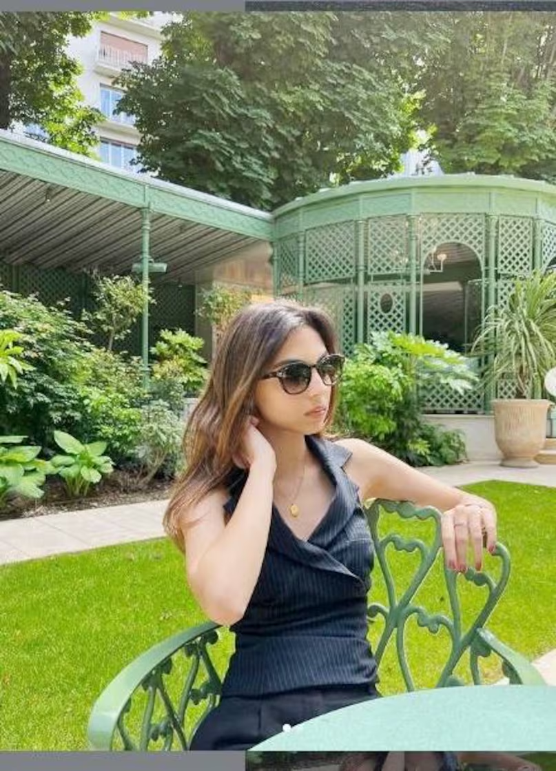 इस आखिरी फोटो में अवीवा बेहद सिंपल लुक में है जिसमें वे उन्होंने नेवी ब्लू या ब्लैक बेस पर सफेद बारीक धारियों वाला 'पिनस्ट्राइप' वेस्टकोट पहना है. इसका हाल्टर नेक और कॉलर वाला डिजाइन इसे एक फॉर्मल लेकिन स्टाइलिश टच देता है. अवीवा ने अपने लुक को ओवरसाइज़्ड सनग्लासेस और एक मिनिमल गोल्ड पेंडेंट के साथ एक्सेसराइज किया है, जो उनकी सादगी में चार चांद लगा रहा है. अवीवा बेग का यह लुक क्लासी और मॉडर्न फैशन का एक बेहतरीन उदाहरण है