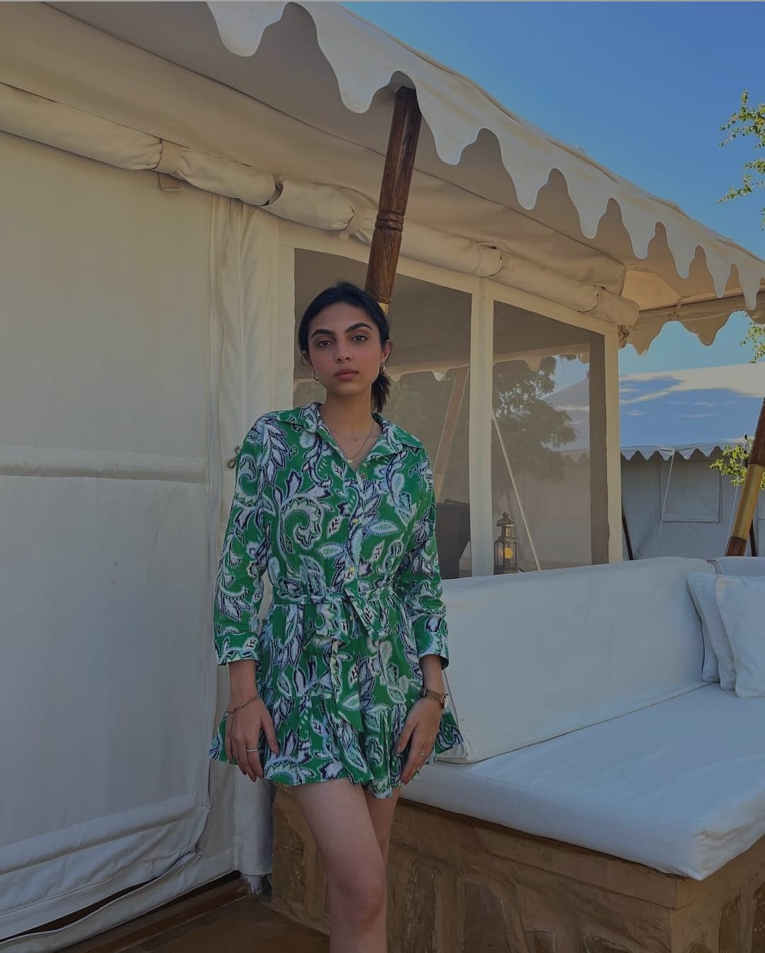 इस फोटो में अवीवा ने ग्रीन प्रिंटेड शॉर्ट ड्रेस पहन रखी है जो फ्रेश और कैज़ुअल समर लुक देती है. इसमें शर्ट-स्टाइल कॉलर और फुल स्लीव्स हैं, जो इसे स्टाइलिश के साथ कंफर्ट भी बनाते हैं. फ्लोरल और पैस्ले प्रिंट ड्रेस को ट्रेंडी और वेकेशन-परफेक्ट बनाता है. यह आउटफिट डे आउटिंग, हॉलीडे या ब्रंच के लिए बेहद माकूल है। Photo-Aviva Baig Insta Page