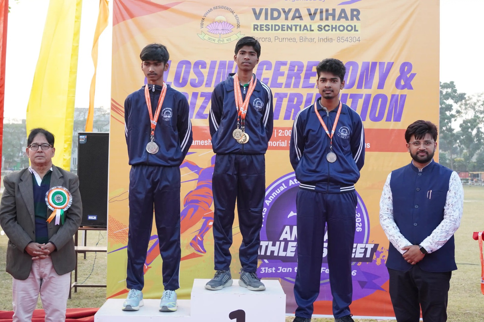 विद्यालय के खेल एवं शारीरिक शिक्षा विभाग की टीम— अमित लकड़ा (HOD), वेद प्रकाश भगत, देबाशीष सरकार, विजयलक्ष्मी, नंद किशोर यादव, अनामिका रजक, मोहम्मद शादाब अकरम, अभिषेक चौधरी, प्रज्ज्वल चौधरी एवं सभी शिक्षक गण ने आयोजन को सफल बनाने में महत्वपूर्ण भूमिका निभाई। विद्या विहार आवासीय विद्यालय ने इस आयोजन के माध्यम से एक बार फिर सिद्ध किया कि वह शिक्षा के साथ-साथ खेलों के क्षेत्र में भी उत्कृष्टता के नए मानक स्थापित कर रहा है।
