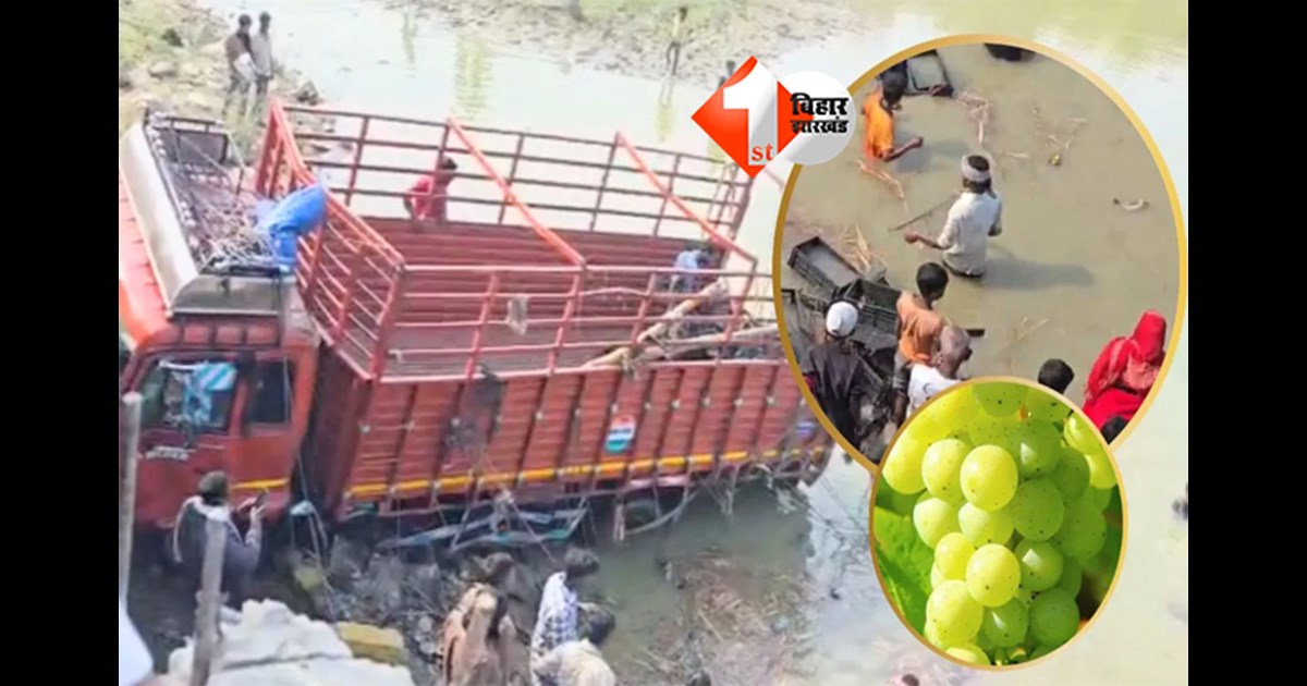 Bihar viral news : बिहार के दरभंगा जिले में एक अनोखी और हैरान करने वाली घटना सामने आई है। घटना सिंघवाड़ा थाना क्षेत्र के अतरबेल पुल के पास की है, जहां अंगूर से लदा एक ट्रक अचानक संतुलन खो बैठा और पुल से नीचे नदी में जा गिरा। ट्रक में बड़ी मात्रा में अंगूर लदे थे, जो हादसे के बाद पानी में बहकर नदी में फैल गए। जैसे ही यह खबर आसपास के ग्रामीणों तक पहुँची, वे बड़ी संख्या में घटनास्थल पर पहुंच गए।