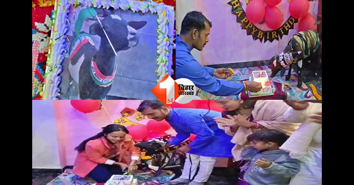 यह मामला जमुई शहर के बिट्ठलपुर इलाके का है, जहां परिवार ने अपनी पालतू बकरी ‘पुष्पांजलि’ का जन्मदिन किसी इंसान की तरह मनाया। घर को रंग-बिरंगे गुब्बारों से सजाया गया, दीवार पर ‘Happy Birthday’ लिखा गया और फूलों से सजावट की गई। बीच में सजे मंच पर केक रखा गया, जिस पर पुष्पांजलि की तस्वीर भी लगी थी। मोमबत्तियां जलाई गईं, फूल चढ़ाए गए और पूरे सम्मान के साथ बकरी के सामने केक काटा गया।
