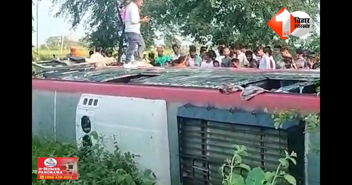 कैमूर जिले के भभुआ-मोहनिया पथ पर रविवार शाम एक बड़ा सड़क हादसा हो गया। जानकारी के मुताबिक, शाम में पटना जा रही एक यात्री बस डिहरा के पास अचानक अनियंत्रित होकर सड़क किनारे गड्ढे में पलट गई। हादसे के बाद अफरा तफरी मच गई और कई यात्री गंभीर रूप से घायल हो गए। स्थानीय लोगों ने तुरंत मौके पर पहुंचकर घायलों को बस से बाहर निकाला और निजी साधनों से अस्पताल भेजा।