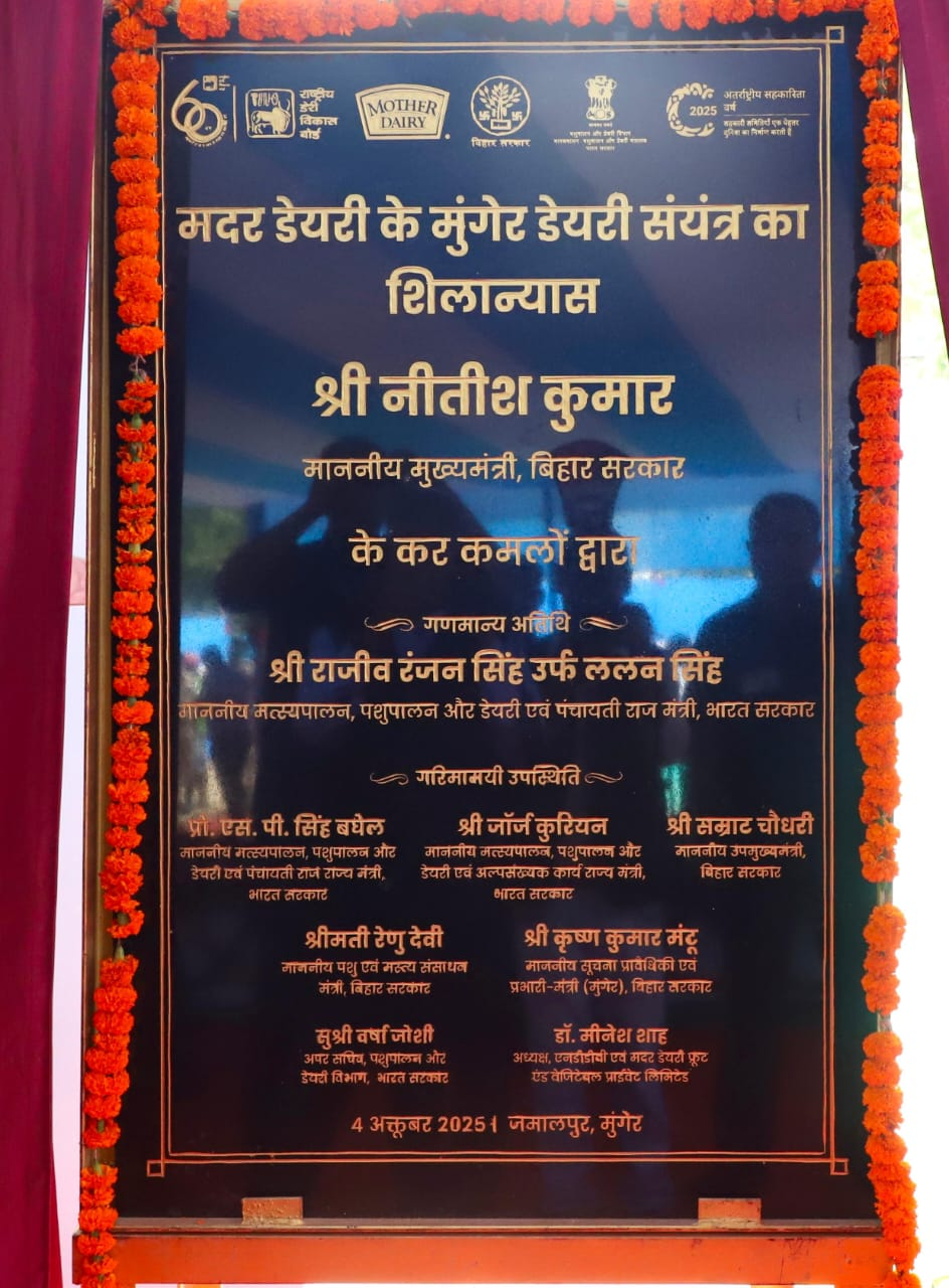 मुंगेर वासियों के लिए आज का दिन ऐतिहासिक साबित होगा क्योंकि आज बिहार के मुख्यमंत्री नीतीश कुमार ने जमालपुर स्थित बियारडा कि 15 एकड़ जमीन पर ढाई सौ करोड़ की लागत से नेशनल डेयरी बोर्ड की सहायक शाखा मदर डेयरी की नींव डालने के साथ ही मुंगेर वासियों ओर मुंगेर जिले के इर्दगिर्द के लोगों के लिए बारह हजार करोड़ कि योजनाओं की सौगात दी है।इस मौके पर उप मुख्यमंत्री सम्राट चौधरी ने कहा भारत सरकार के द्वारा मदर डेयरी का नींव मुख्यमंत्री के द्वारा डलवाने के लिए लालन जी को धन्यवाद देते है। नीतीश जी मुंगेर के इर्दगिर्द की बारह हजार करोड़ की योजनाओं का तोहफा देंगे।आज मुंगेर से भागलपुर तक गंगा पथ वे लगभग दस हजार करोड़ की योजना काम कियाजा रहा है। हल्दिया एक्सप्रेस वे का काम किया जा रहा है।*बिहार बदल रहा है बिहार समृद्धि की ओर जा रहा है।आज नीतीश जी की कल्पना है यहां कोको कोला आदि की कई फैक्ट्रियां खुलने जा रहा है ये नीतीश कुमार का विजन है।