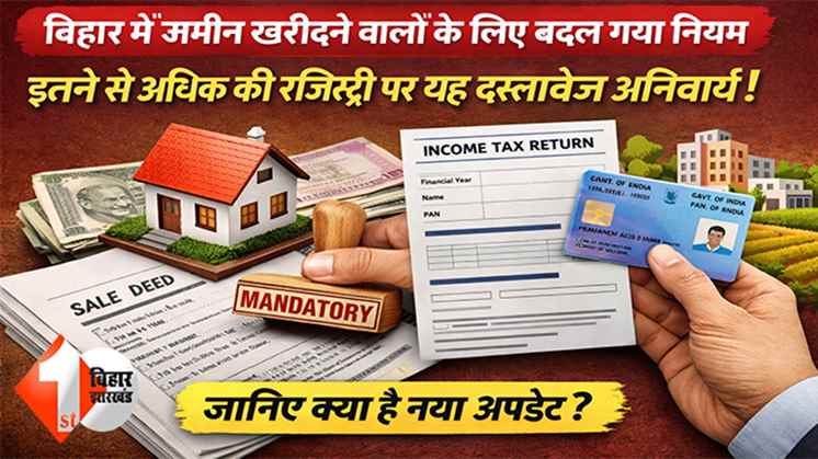 REVENUE DEPARMENT UPDATE: बिहार में जमीन और मकान की खरीद-बिक्री से जुड़ा एक अहम बदलाव लागू किया गया है। अब 10 लाख रुपये या उससे अधिक मूल्य की किसी भी संपत्ति की रजिस्ट्री कराने के लिए पैन कार्ड देना अनिवार्य होगा। यह नियम पूरे राज्य में प्रभावी है और जमीन, प्लॉट, मकान, फ्लैट या दुकान जैसे सभी अचल संपत्तियों पर लागू होगा।