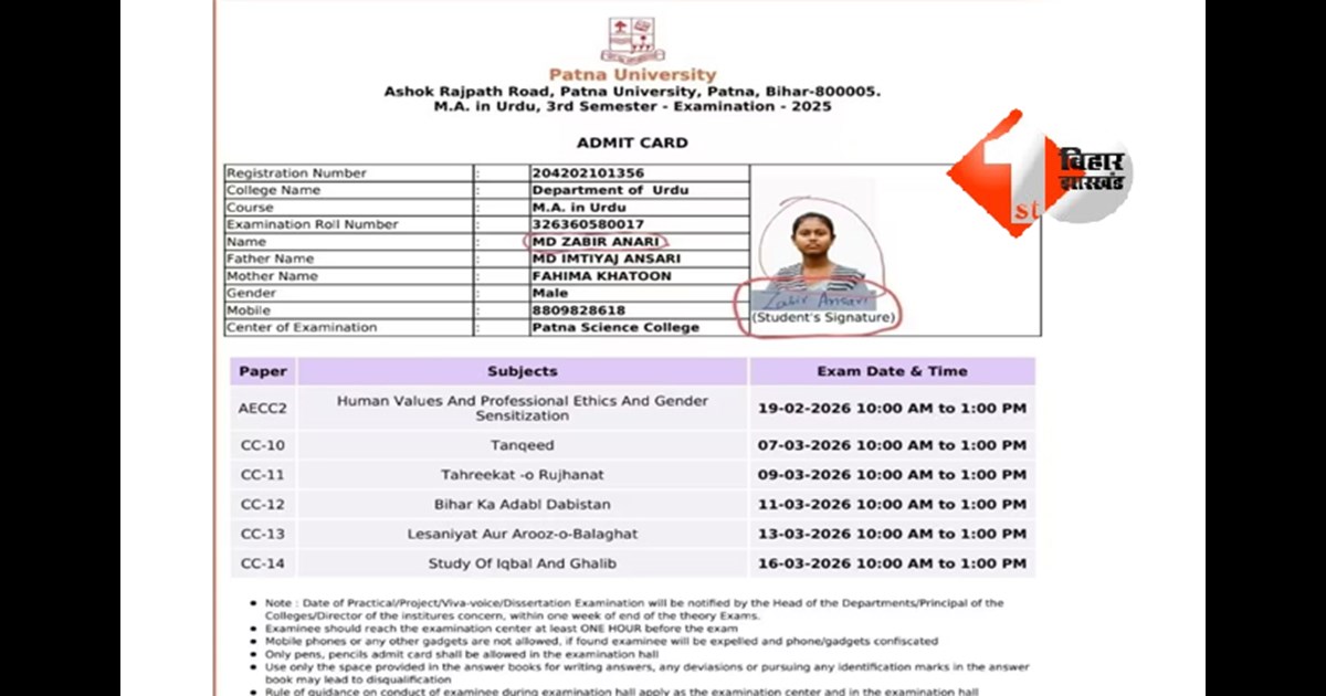 Bihar News: पटना विश्वविद्यालय में लापरवाही का एक चौंकाने वाला मामला सामने आया है, जिसने न केवल विश्वविद्यालय की साख पर सवाल खड़े कर दिए हैं, बल्कि एक छात्र का भविष्य भी संकट में डाल दिया है। एमए परीक्षा देने जा रहे छात्र के एडमिट कार्ड में गंभीर त्रुटि पाई गई है।