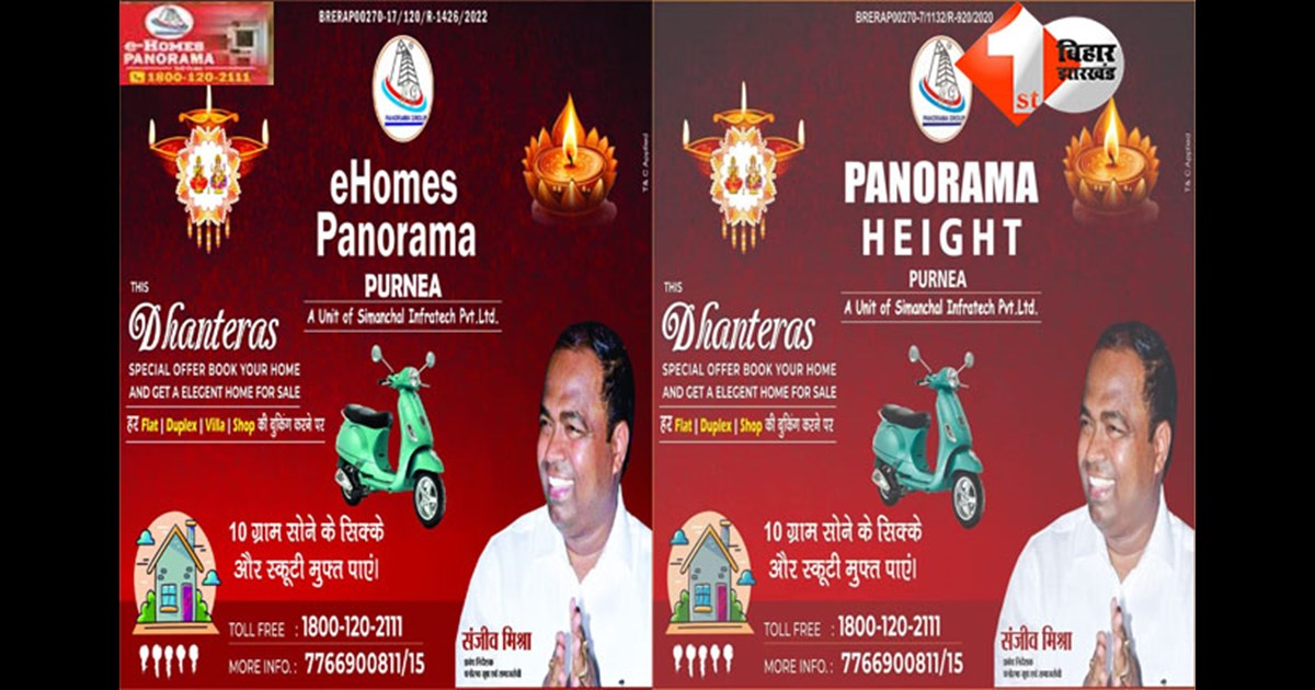 Purnea News: त्योहारों का मौसम हमेशा नई उम्मीदें, नई खुशियां और नई शुरुआत लेकर आता है। इस वर्ष की धनतेरस और दीपावली को और भी खास बनाने के लिए, पनोरमा ग्रुप लेकर आया है एक सुनहरा अवसर ऐसा अवसर जो सिर्फ एक घर खरीदने तक सीमित नहीं, बल्कि जीवन की नई दिशा देने वाला है।