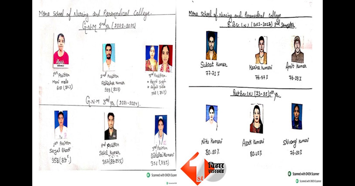 Patna News: मोना स्कूल ऑफ नर्सिंग एंड पैरामेडिकल कॉलेज, पटना में सत्र 2021-2025, 2022-2025 एवं 2023-2027 के विभिन्न पाठ्यक्रमों के परीक्षा परिणाम घोषित किए गए, जिसमें विद्यार्थियों ने उत्कृष्ट प्रदर्शन कर संस्थान का नाम गौरवान्वित किया।