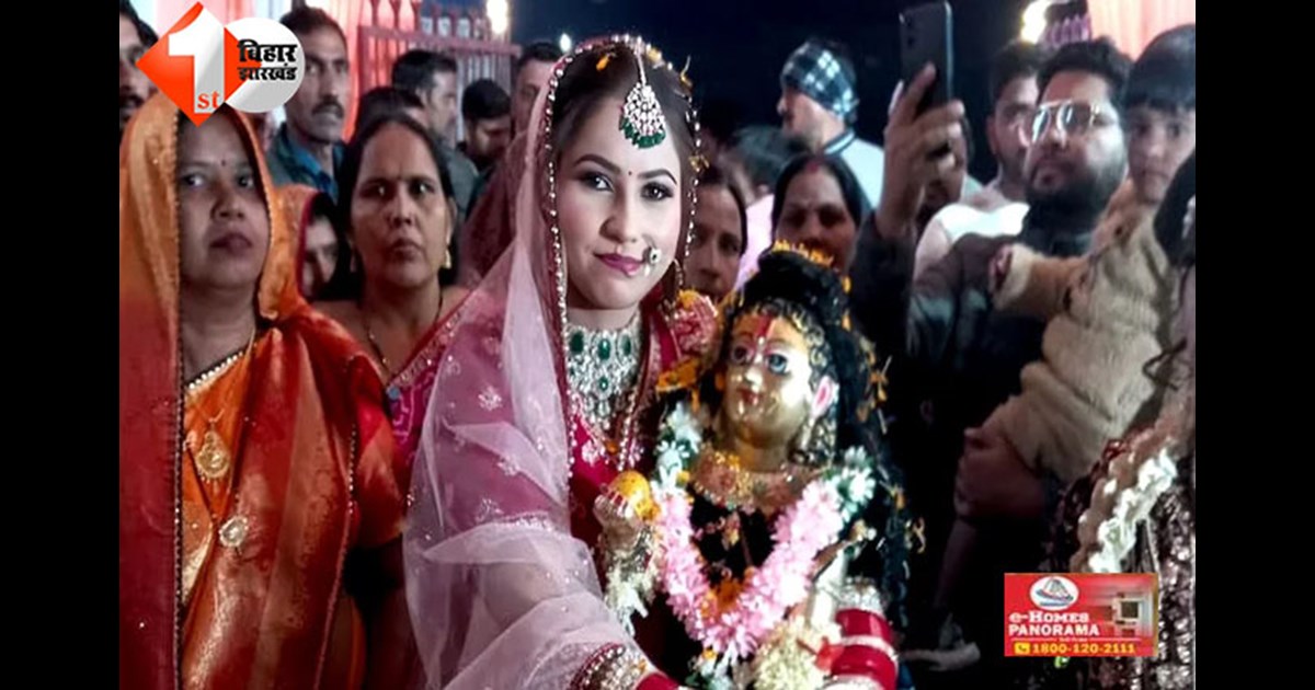 DESK: भक्ति और आस्था का एक अनोखा दृश्य यूपी में देखने को मिला। जहां 28 वर्षीय पिंकी शर्मा ने भगवान श्रीकृष्ण की प्रतिमा से विधिवत विवाह करके भक्ति की एक अद्भुत मिसाल पेश की। शनिवार को सभी वैदिक रीति-रिवाजों के साथ शादी संपन्न हुई और रविवार को उनकी विदाई भी की गई। मामला उत्तर प्रदेश के बदायूं जिले के इस्लामनगर थाना क्षेत्र के कासिमाबाद का है।