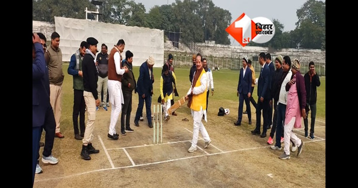 Bihar Politics: पटना के मोइनुल हक स्टेडियम में डिप्टी सीएम विजय कुमार सिन्हा क्रिकेट खेलते नजर आए। खेल मंत्री श्रेयसी सिंह बॉलिंग कर रही थीं। श्रेयशी सिंह ने बॉल फेंका और पहली ही गेंद में विजय सिन्हा क्लीन बोल्ड हो गए।